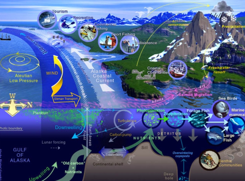 생물과 무생물적 환경이 같이 존재하는 단위를 생태계라 합니다. 계층은 개체, 개체군, 군집, 생태계, 경관, 생물군계, 생물권으로 구분하게 되고 비생물적 요소와 생물적 요소로 나뉩니다. 비생물적 요소에는 토양, 기후, 물, 대기 등 물리적 화학적 요소들을 포함하게 됩니다.