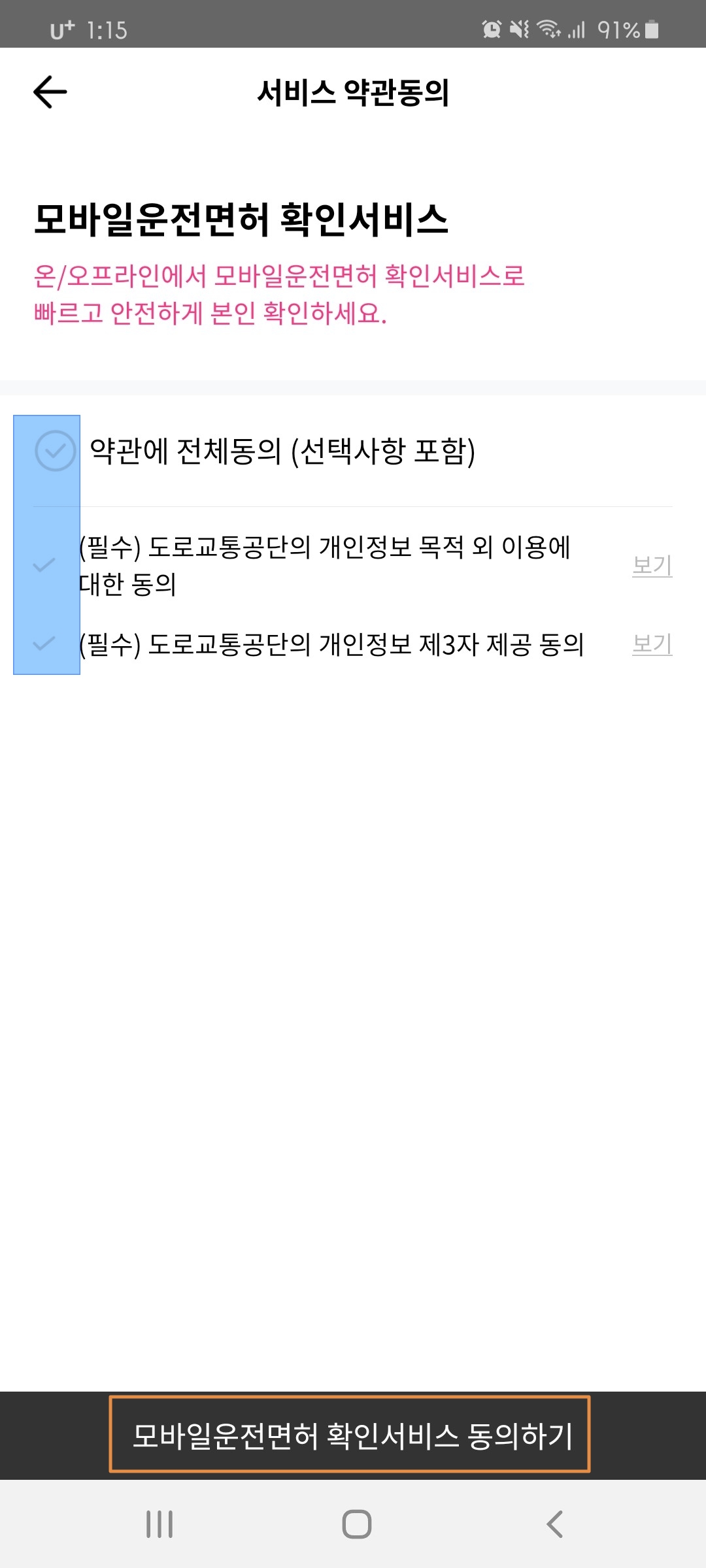 통신사 별로 준비되어 있는 PASS 앱(LG U+ 기준)으로 모바일 운전면허증 을 발급해보도록 하겠습니다. 가입이 되어있지 않은 분들은 가입을 완료해주세요.(기존에 깔아두신 분들은 업데이트 해주시면 면허증을 등록할 수 있게 업데이트가 됩니다.) PASS 앱으로 들어가시면 N 표시가 떠있는 '신분증'이 있습니다. 눌러서 들어가 보시면 모바일 운전면허 확인서비스 등록하기 화면이 뜹니다. '+표시'를 누르고 넘어간 페이지에서 약관 동의를 해줍니다.